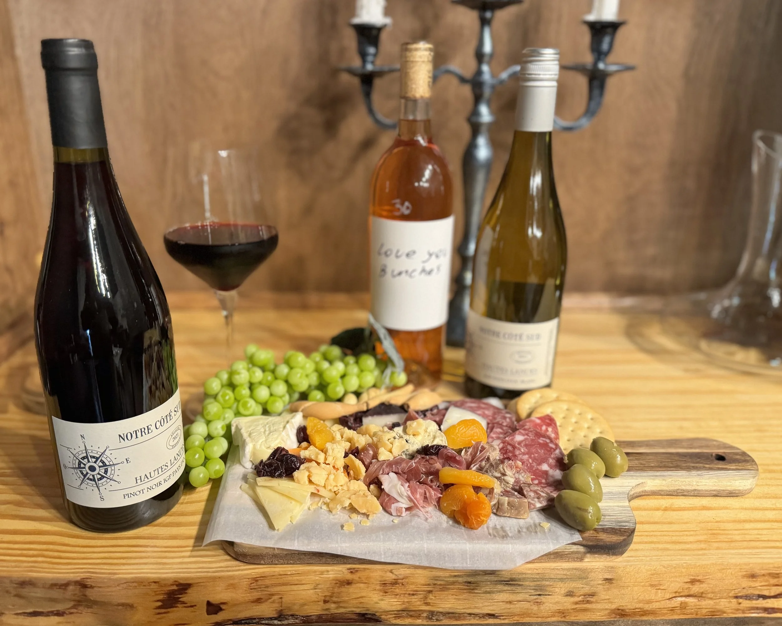 A Charcuterie Board for two and a bottle of Bailey La Pierre $45.